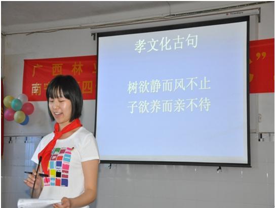 為深入貫徹落實(shí)廣西林業(yè)集團(tuán)創(chuàng)先爭優(yōu)、結(jié)對共建活動精神,為致力于組織好集團(tuán)青年更快樂地成長,更有使命感和責(zé)任感的發(fā)展,2011年5月4日,廣西林業(yè)集團(tuán)共青團(tuán)支部走出企業(yè),走向社會,與南寧市第49中學(xué)共同開展了創(chuàng)先爭優(yōu)、結(jié)對共建“孝文化”主題會,全體團(tuán)員度過了有意義的五四青年節(jié)。