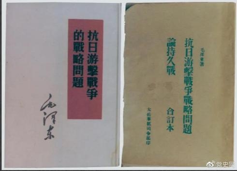 1938年5月,毛澤東發(fā)表《抗日游擊戰(zhàn)爭(zhēng)的戰(zhàn)略問題》。圖為當(dāng)時(shí)的部分版本。